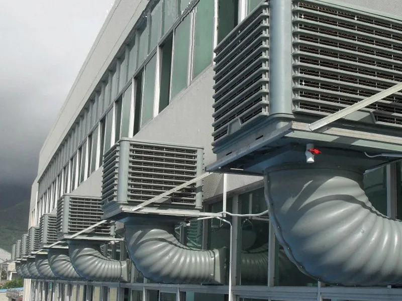 Em ambientes de produção industrial, os ventiladores são comumente usados para remover gases, poeira e odores nocivos. Por exemplo, eles são empregados em fábricas de produtos químicos para exaurir gases tóxicos ou em minas para fornecer ar fresco. Eles também ajudam a controlar a temperatura e a umidade da oficina, melhorando o conforto de trabalho, como visto com grandes ventiladores axiais em torres de resfriamento de usinas de aço que dissipam o calor.